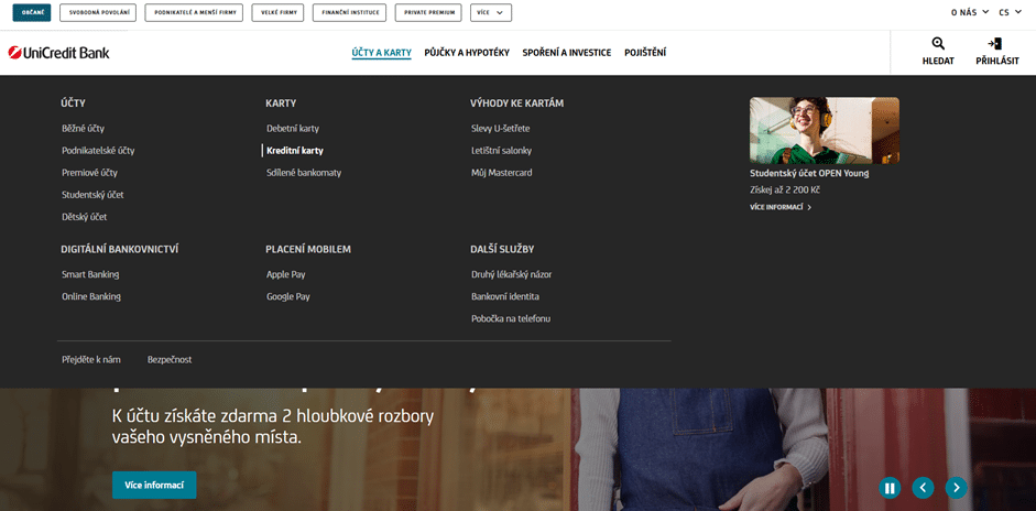 Přejděte na oficiální stránku Unicredit: https://www.unicreditbank.cz/cs/obcane.html