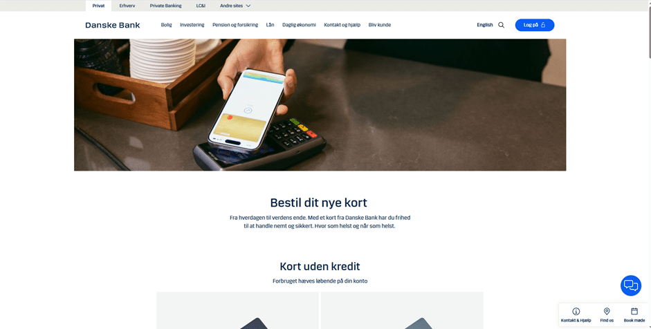 - Du vil blive viderestillet til Danske Banks kontaktside eller en formular, hvor du skal logge ind med MitID (hvis du er eksisterende kunde).