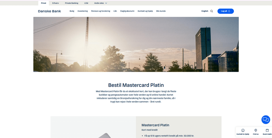 Bemærk: Danske Bank anmoder ofte om, at du kontakter dem direkte for at ansøge om premium-kort som Platin, da det kræver en individuel kreditvurdering.