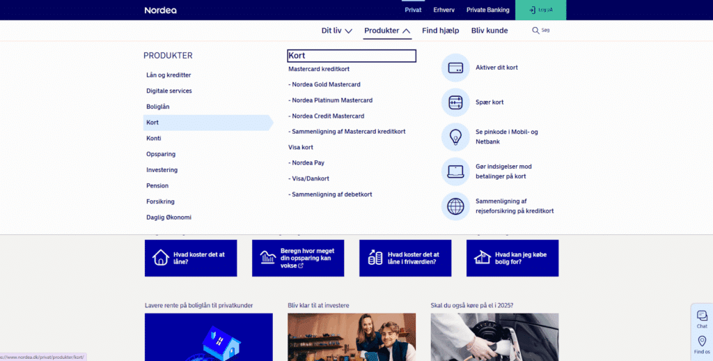 https://www.nordea.dk/ - Naviger til menuen “Produkter”.