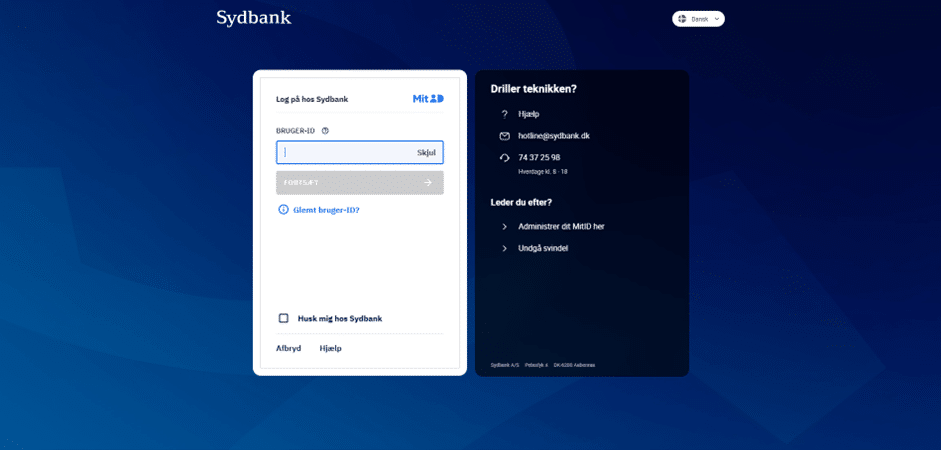 - Et kundeforhold hos Sydbank (hvis du er ny kunde, skal du muligvis oprette en konto først).