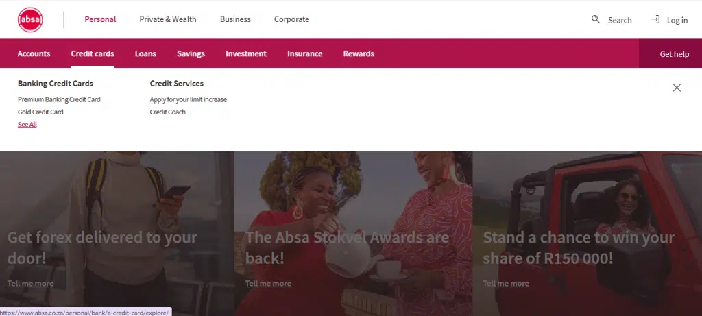 • Absa Credit Cards: Choose from a variety of cards, including the Absa Gold, Premium, and Private, each with exclusive benefits for travel, purchases, and rewards.