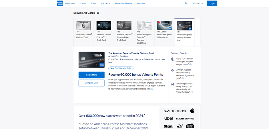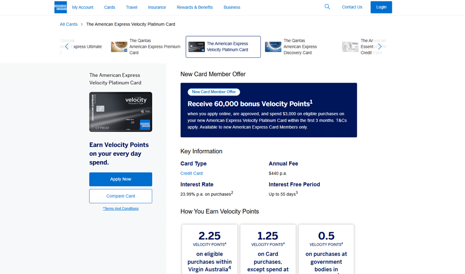 - On this page, you will see a large range of cards (e.g., Explorer, Qantas Ultimate, Amex Platinum).
