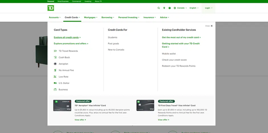 1. Visit the official TD Canada Trust website and navigate to the Credit Cards section.