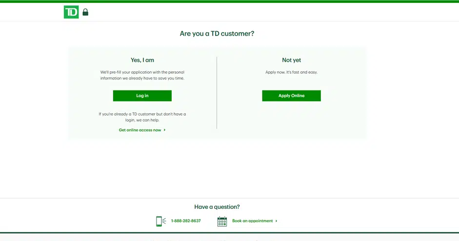 After clicking “Apply Now,” you will be redirected to the TD login page.