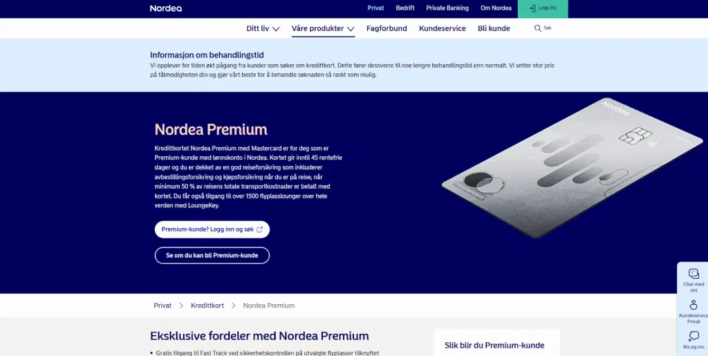 På denne siden finner du all informasjon om Nordea Premium-kortet.