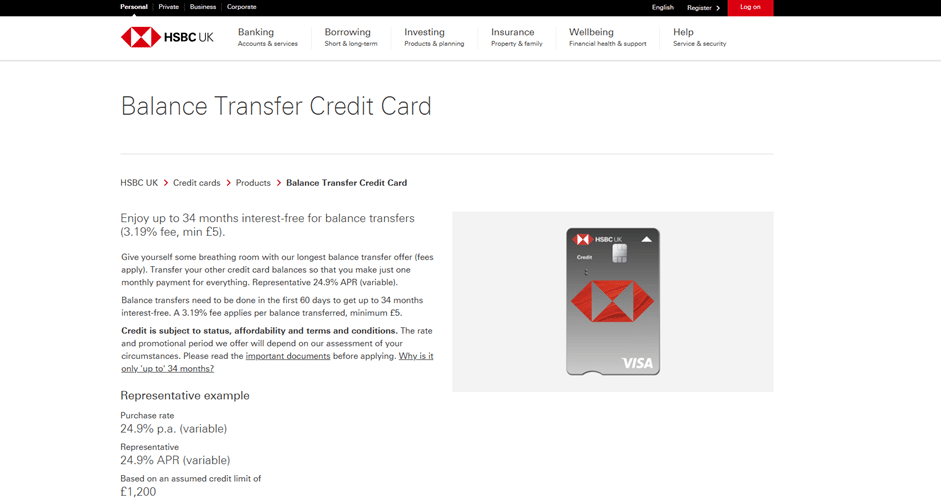 - On this page, you will have access to all the details of the HSBC Balance Transfer credit card, including the duration of the 0% interest offer and the transfer fees (Balance Transfer Fee).