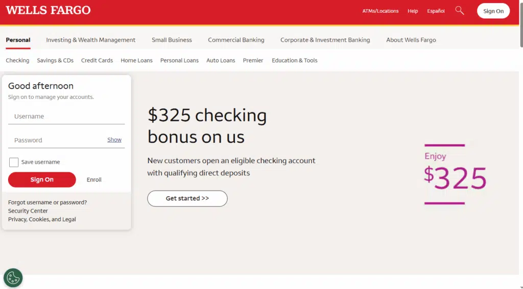 1. Access the Wells Fargo Homepage