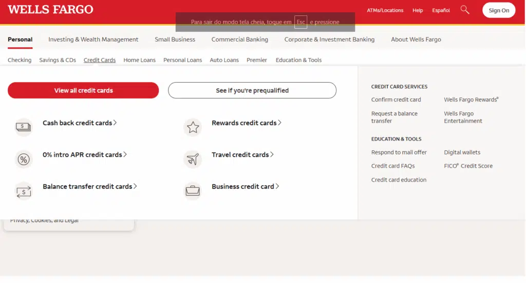 Here, you can explore all the banking services, including credit cards, checking accounts, loans, and more.