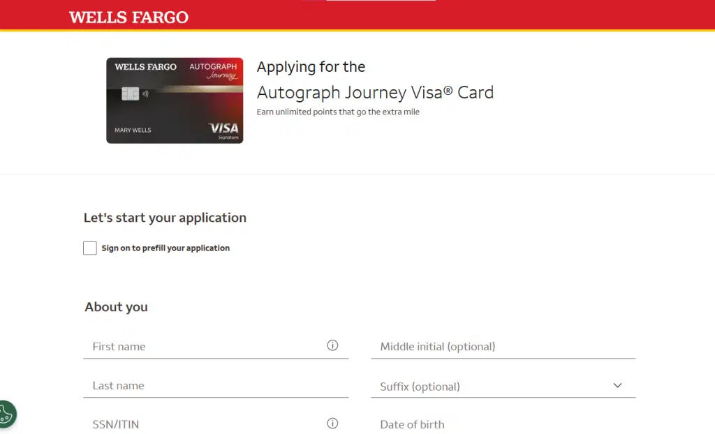 - Simplified Pre-fill: If the applicant is already a Wells Fargo customer, some personal and financial information may be pre-filled automatically, significantly speeding up the Autograph Journey Card application process.