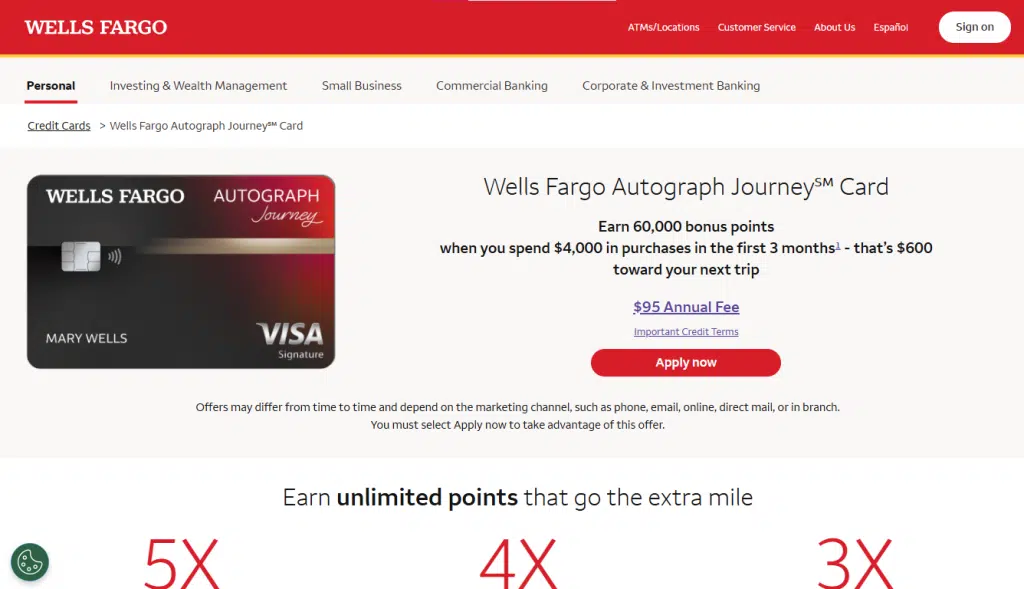 Wells Fargo is a major credit card issuer in the U.S. The launch of the Wells Fargo Autograph Journey Visa Credit Card demonstrates the bank’s ambition to compete in the premium travel card segment, offering benefits that rival those of other major issuers. The card’s features, such as 5X points on hotels, 4X points on airlines, and 3X points on other travel and restaurants (Source 1.8), combined with the $50 annual statement credit for minimum airfare purchases (Source 1.8), are designed to attract high-value travelers. The trust that Visa, one of the world’s largest payment networks, places in Wells Fargo by licensing the Autograph Journey Visa Signature is further proof of the bank’s stability and reach (Source 1.4).