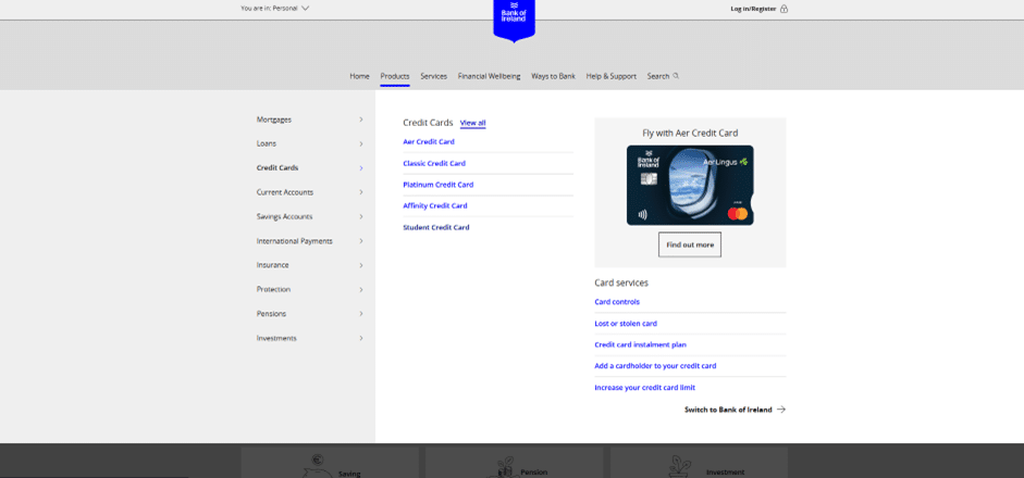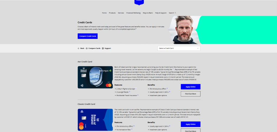 Bank of Ireland Credit Cards Page