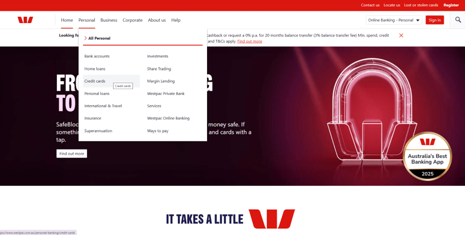 1. Access the Westpac homepage: https://www.westpac.com.au/