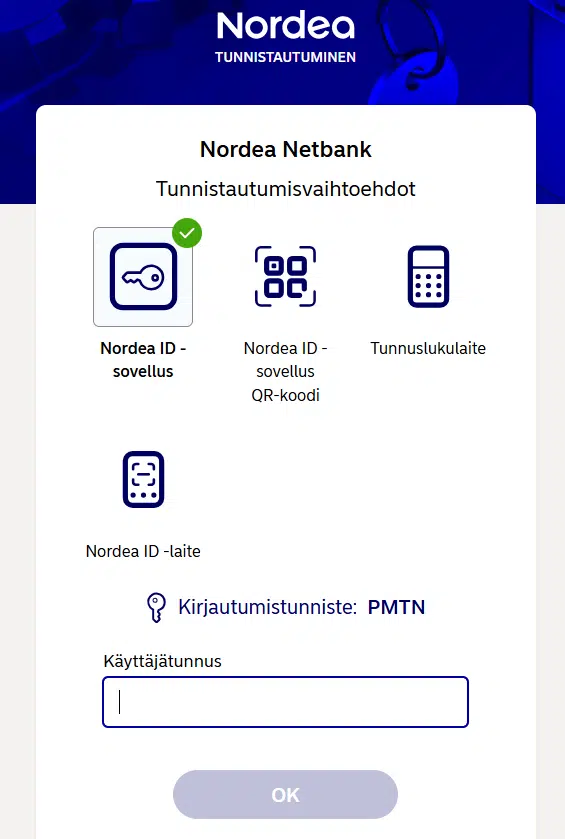 3. Kirjaudu Nordea Mobile -sovellukseen tai Netbankiin