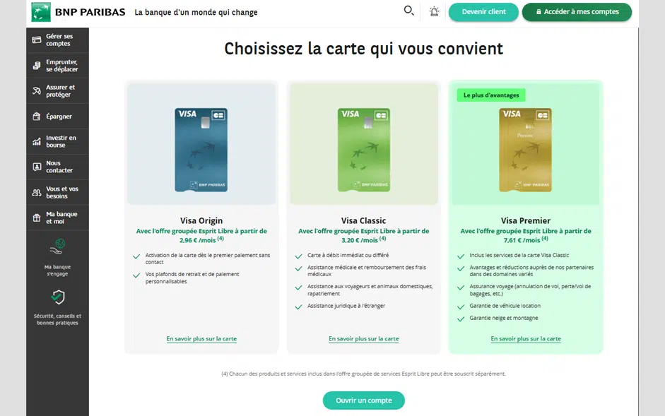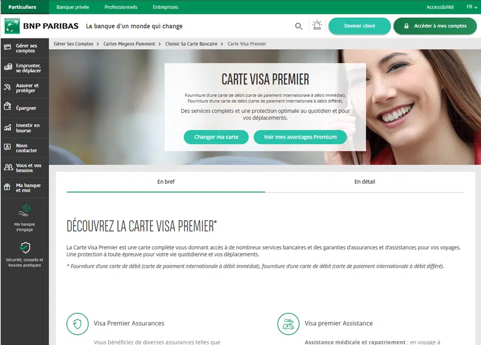 - Présentation claire de la Carte Visa Premier (BNP Paribas) et de ses bénéfices.