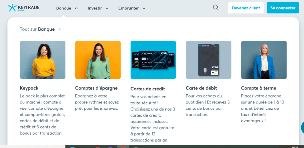 Keytrade Bank propose une gamme complète de services financiers, y compris des comptes bancaires, des cartes de crédit, des prêts, et des services de gestion de patrimoine. Les clients peuvent profiter de solutions adaptées à leurs besoins, que ce soit pour une gestion quotidienne ou pour des projets à long terme.
