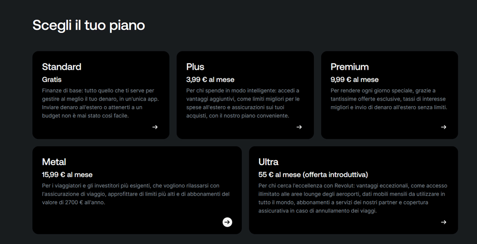 2. Seleziona il piano Revolut Metal