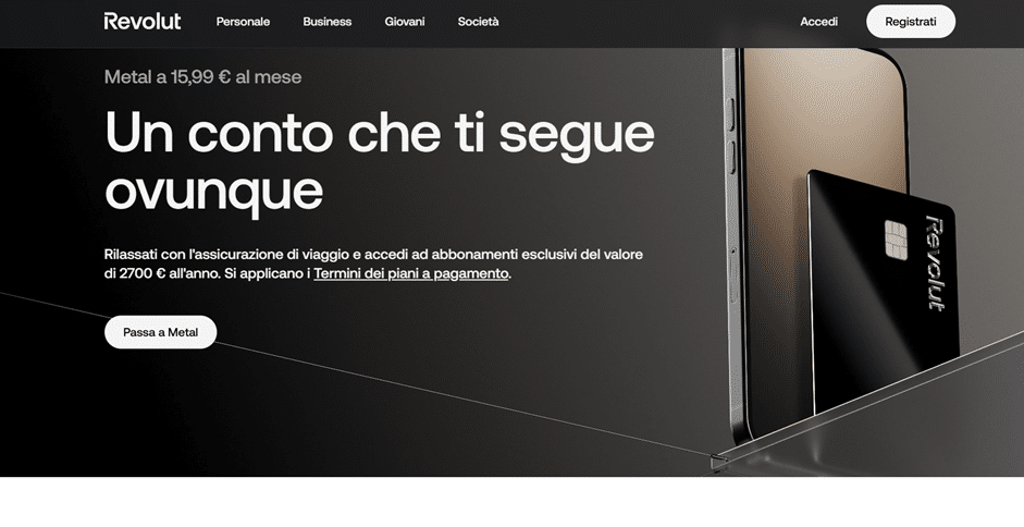 Il piano Metal di Revolut offre tanti vantaggi. Ti dà una carta in metallo, assicurazioni per viaggi e benefici su pagamenti e prelievi all’estero. Vedrai breve se fa per te e come evitare costi extra sui cambi.