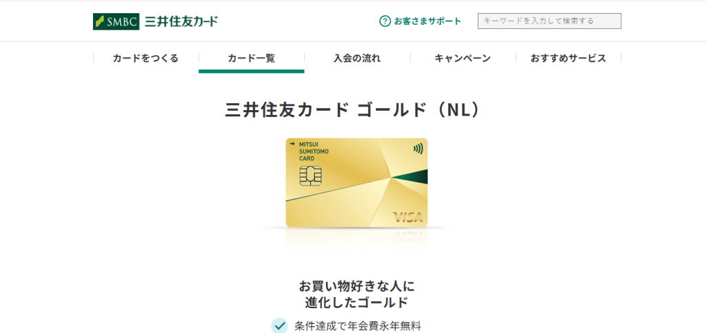 三井住友カード ゴールド(NL)の詳細ページに進みます。