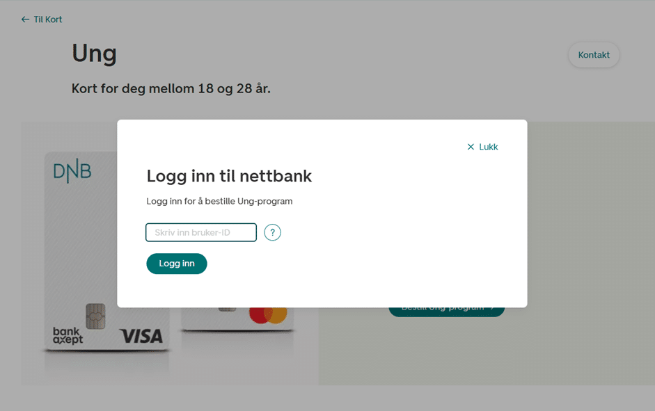 Klikk på den tredje menyen “Kort” for å se alle kortalternativer som tilbys av DNB.