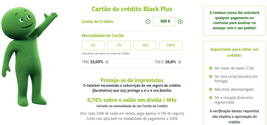 O programa de pontos ou cashback Cetelem premia cada euro gasto. Algumas categorias oferecem percentagens de reembolso maiores, o que facilita a acumulação rápida de benefícios Cartão Black Plus.