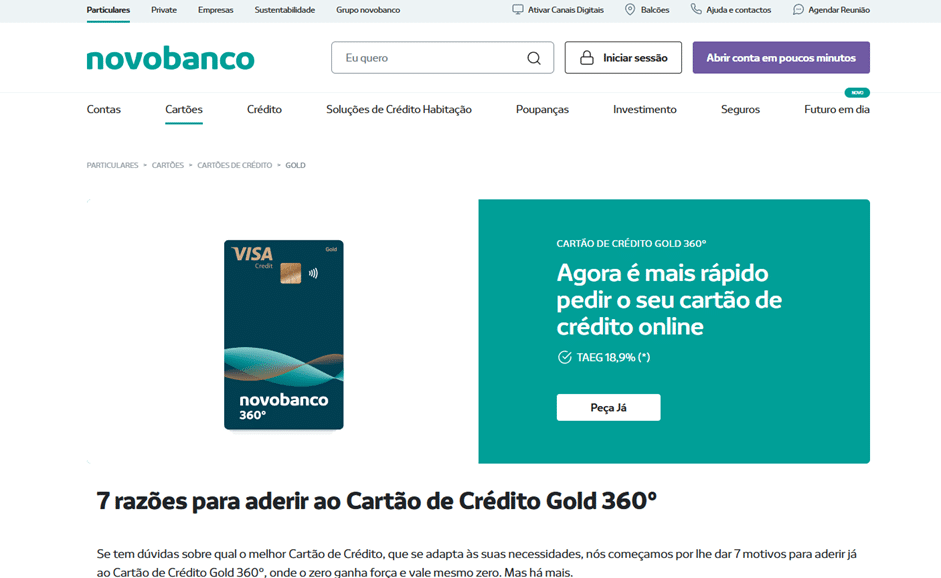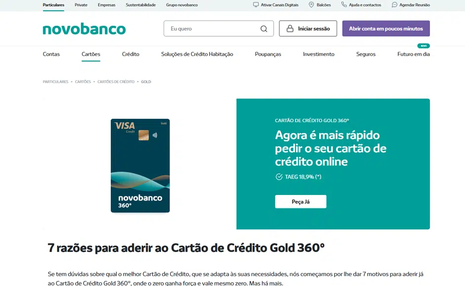 A forma mais eficiente de iniciar o pedido é através dos canais digitais da instituição. Se já é cliente, pode utilizar o NB net ou a NB app. Dentro da aplicação, deve navegar até à secção de “Cartões”, selecionar a opção relativa ao crédito e escolher o modelo Gold 360. Para quem prefere o contacto direto, a solicitação pode ser feita presencialmente em qualquer balcão da rede NOVO BANCO distribuída por Portugal.