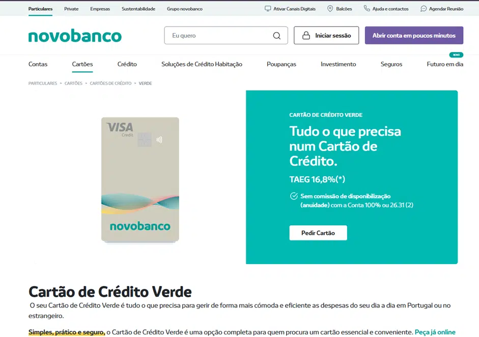 Tags: Cartão NB Verde, NOVO BANCO, solicitar cartão de crédito, crédito Portugal, Visa Verde, anuidade cartão, seguros de viagem, NB net, finanças pessoais, cartão de crédito online, aprovação de crédito, banco de retalho Portugal.
