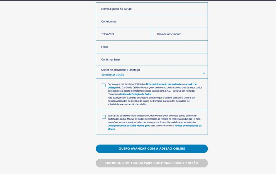 Será redirecionado para o formulário de adesão seguro. Basta preencher as informações solicitadas, confirmar a sua identidade e concluir o processo. Após a análise e aprovação por parte do WiZink, receberá o seu novo cartão diretamente na sua morada em poucos dias.
