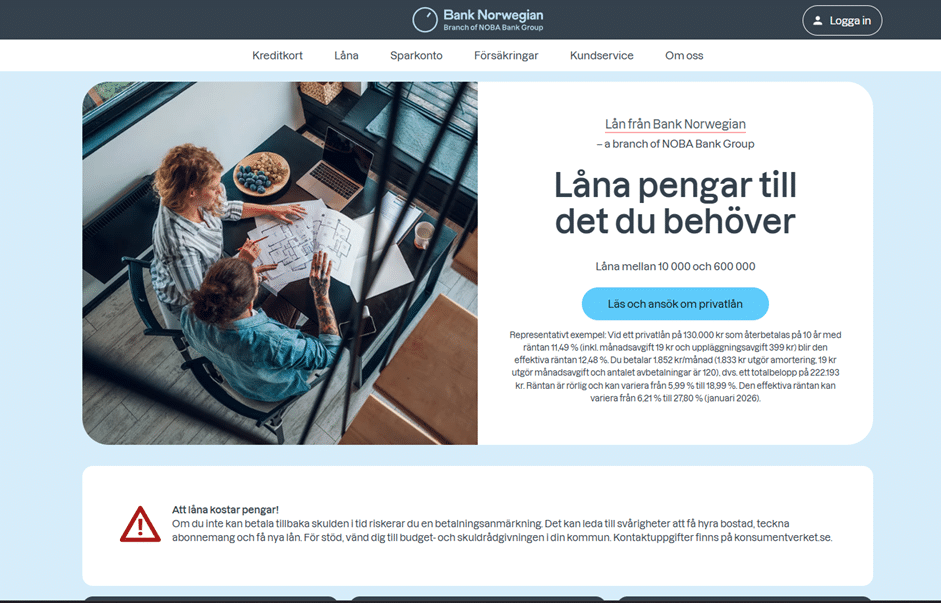 1. Besök Bank Norwegians hemsida